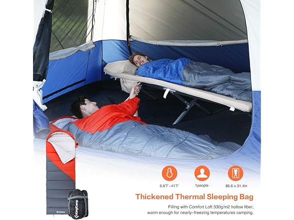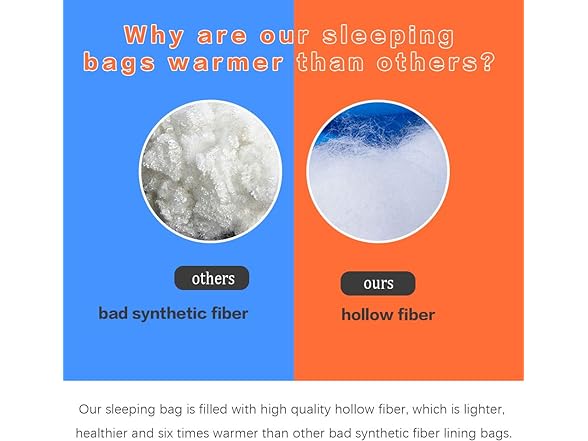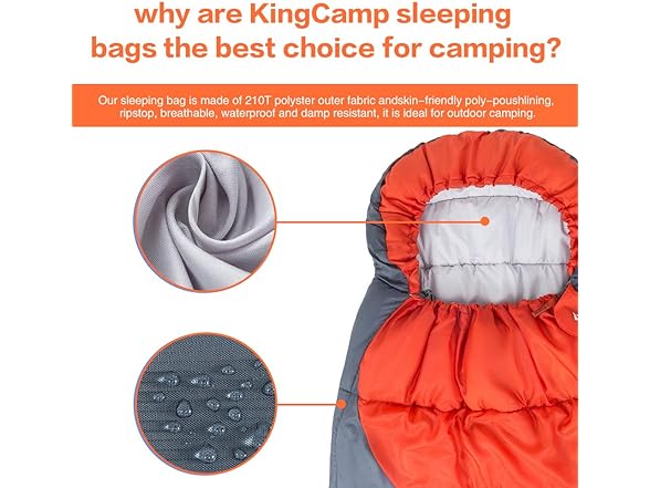 - SUPER WARM AND COZY SLEEPING - This VALLEY SERIES sleeping bag is designed for three season camping, waterproof 210T polyester shell, skin-friendly liner and premium hollow fiber filling make this sleeping bag super warm and cozy.