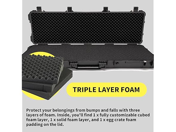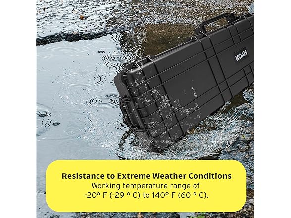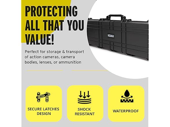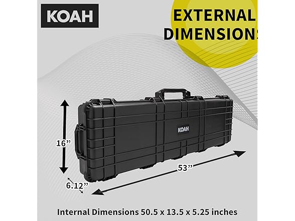 Koah 53" Inch Weatherproof Protective Roller Rifle Hard Case with Customizable Foam, Pressure Valve, and Lock Fittings (Black)