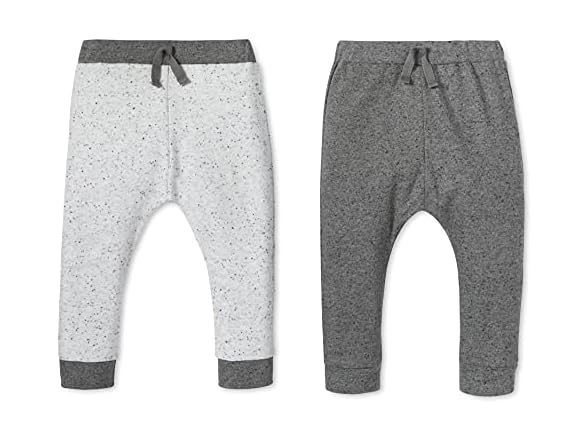 Lamaze Baby Boys' Super Combed Natural Cotton Pull on Jogger Pants, 2 Pack, Light/Dark Grey
