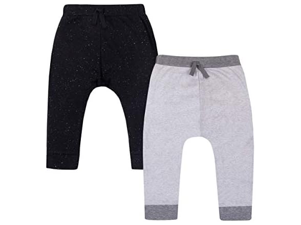 Lamaze Baby Boys' Super Combed Natural Cotton Pull on Jogger Pants, 2 Pack, Black/Grey, 12 Months