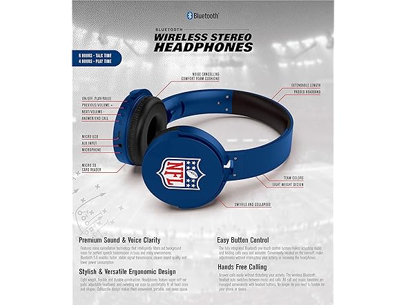 NFL Las Vegas Raiders Wireless Bluetooth Headphones, Team Color