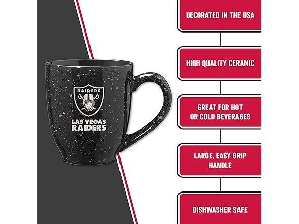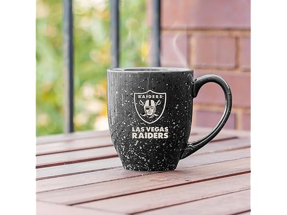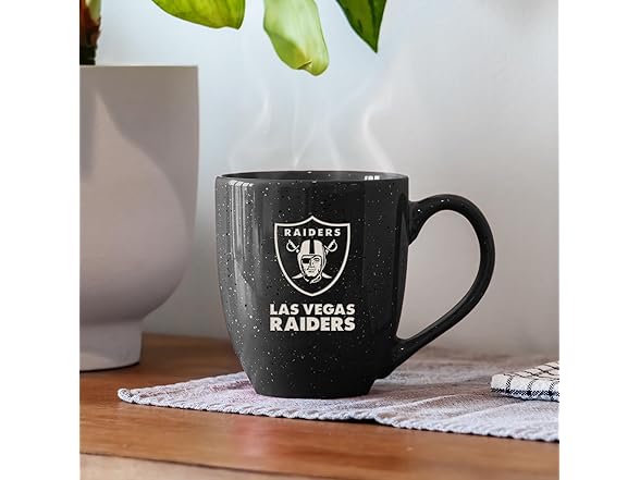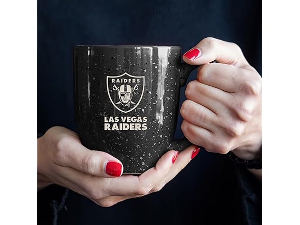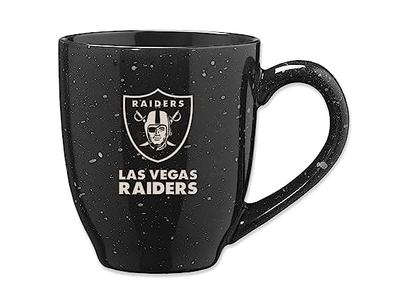 Rico Industries NFL Football Las Vegas Raiders Raider Nation 16 oz Team Color Laser Engraved Speckled Ceramic Coffee Mug