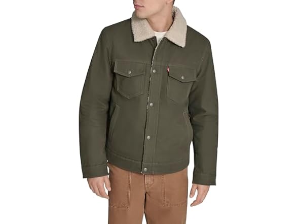 This Levi's men's trucker jacket pairs iconic style with everyday comfort, crafted from durable cotton and fully lined with plush sherpa for warmth. Designed with classic utility details and a zip-front with button closure, it's a versatile layer built for cooler weather.