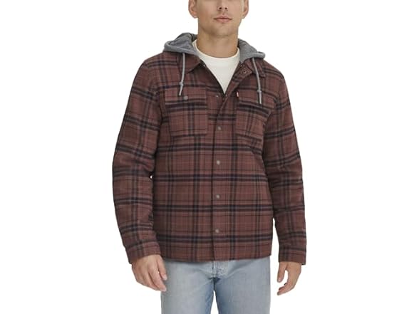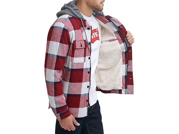 Levi's Men's Plaid Sherpa Lined Hooded Shirt Jacket