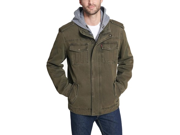 Levi's Men's Washed Cotton Military Jacket with Removable Hood