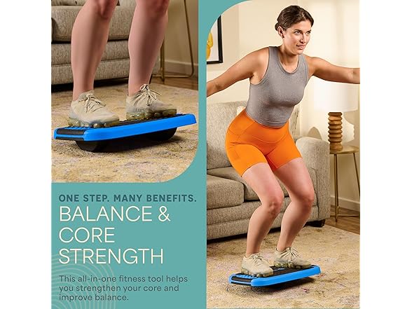 - IMPROVE BALANCE & CORE STRENGTH - The step aerobics platform doubles as a four-way balance board, utilizing 2 balance disks & a balance ball. Develop core strength, stability & firm footing with this fitness step platform.
