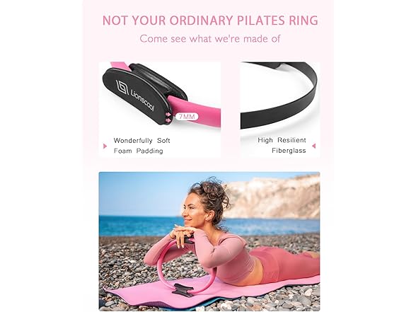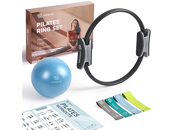LIONSCOOL Pilates Ring Set – 14" Anti-Deformation Magic Circle with Padded Handles, Mini Ball, Resistance Bands, Guide & Bag