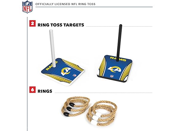 - FUN FOR EVERYONE: Perfect for both indoor and outdoor play, this easy-to-learn ring toss game adds excitement to any gathering. An ideal choice for game nights and backyard entertainment, this Officially Licensed NFL Ring Toss Game delivers hours of competitive fun!
