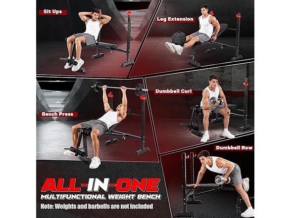 - 【Full Body Training】 Transform your space into a professional home gym with this versatile powerhouse. Master chest presses, dumbbell flies, sit-ups, and bicep curls on a single platform – targeting arms, back, shoulders, core, and legs for complete muscle development without multiple machines.