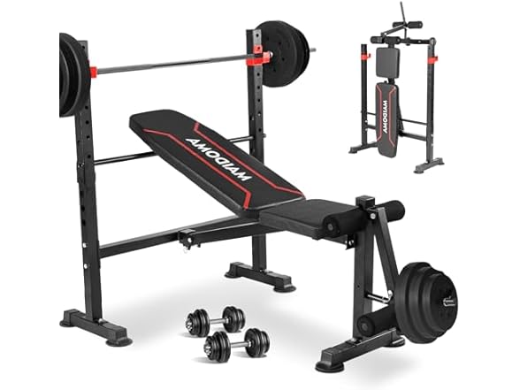 - 【High Stability】 Engineered with a reinforced triangular steel frame and thickened support tubes, MAIDOMA bench a 750lb max weight capacity. Anti-slip rubber feet and integrated weight plate anchors create a rock-solid foundation for bench presses, ensuring Highly stable during high-intensity home gym workouts.