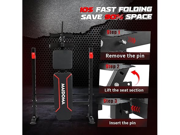 - 【Space saving】 ultra-compact foldable design saves 80% space—remove one pin, store vertically, and maintain a clutter-free home gym.