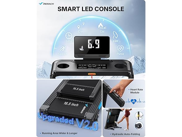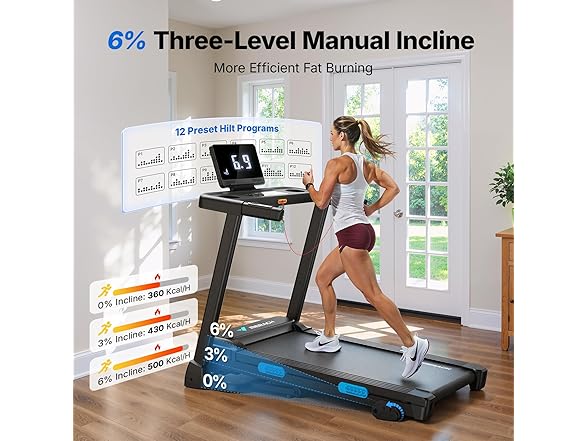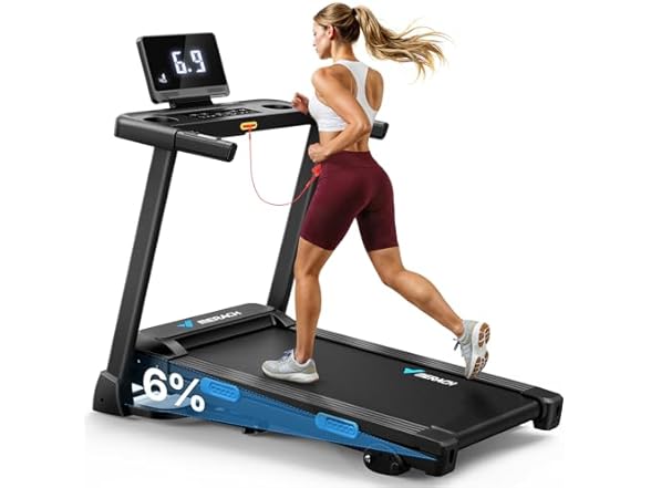 MERACH Incline Treadmill with Incline 6%-15%, 7-Layer Belt 300LBS Capacity Tredmill Foldable Handle Running Treadmills for Home, 0.5-7.5MPH 3.0HP Incline Folding Treadmill LED with APP Threadmill