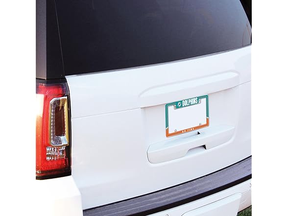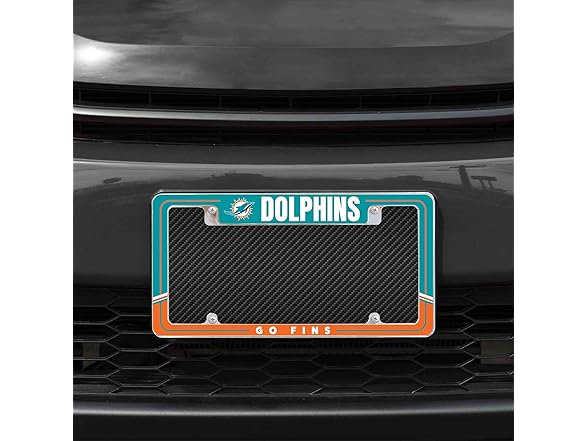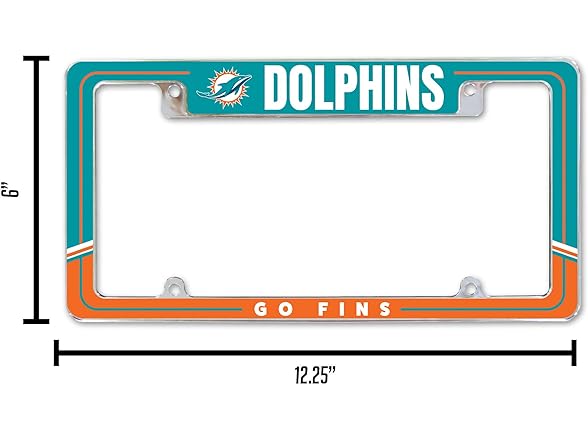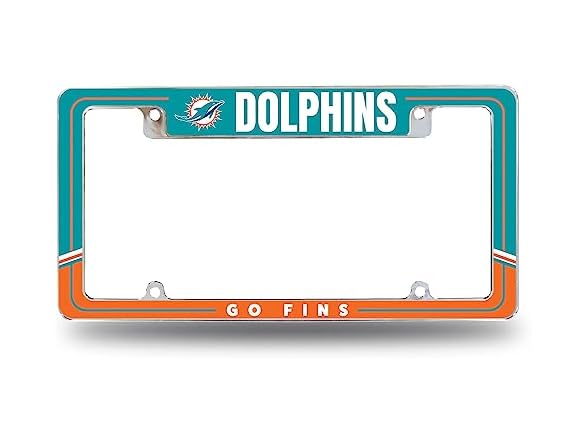 • (1) Rico Industries NFL Football Miami Dolphins Two-Tone 12" x 6" Chrome All Over Automotive License Plate Frame for Car/Truck/SUV
