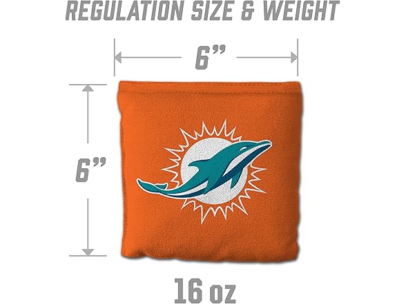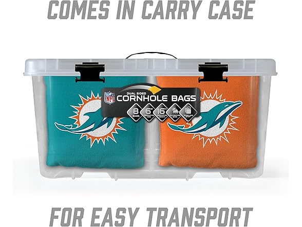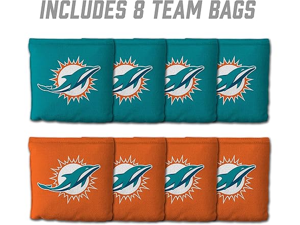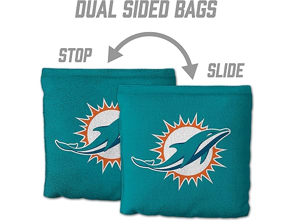 YouTheFan Officially-Licensed NFL Miami Dolphins Set of 8 Cornhole Bags - All Weather Dual Sided Slide & Stop - Regulation Size with Carry case