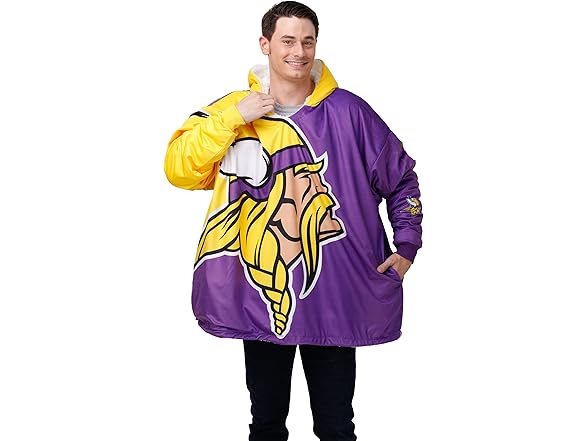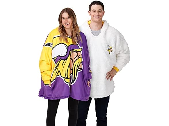FOCO NFL Minnesota Vikings Unisex Reversible Oversized Sherpa Hoodie Sweatshirt Colorblock Hoodeez One Size
