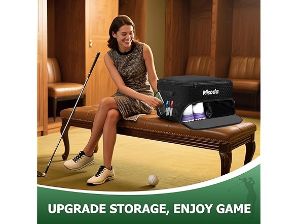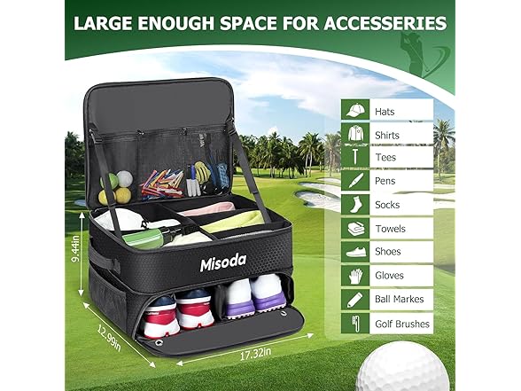 - SHOE STORAGE MADE EASY:Keep your golf stuff organized with a ventilated compartment that fits 2 pairs of golf shoes up to US Men's Size 16. Perfect for golf travel bag, golf stocking stuffers, and golf stuff for men—no more messy shoes, just good good golf vibes.