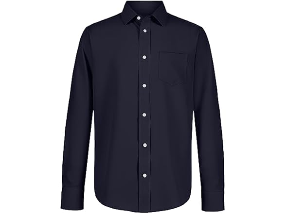 Nautica Boys' School Uniform Long Sleeve Performance Oxford Button-Down Shirt, Navy, 8 Husky