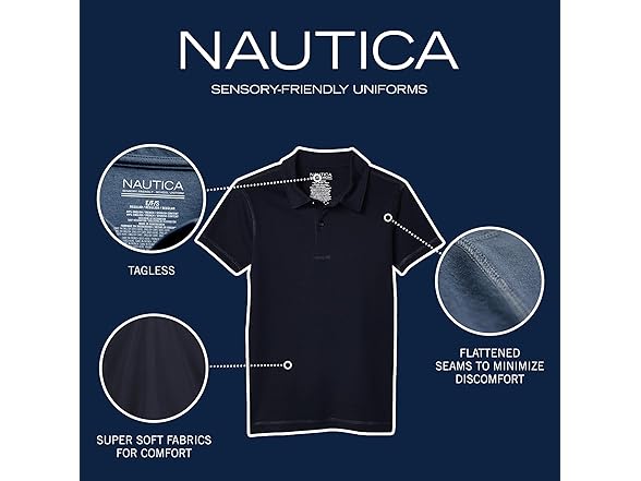 Nautica Boys' School Uniform Sensory-Friendly Short Sleeve Polo, Navy, Small(8)