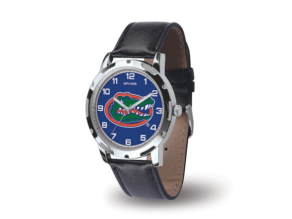 The Men's Wrecker Watch by Sparo has the officially licensed team logo and colors on the dial. It has a PU leather strap and is water resistant. It comes packaged in a clear plastic gift box.
