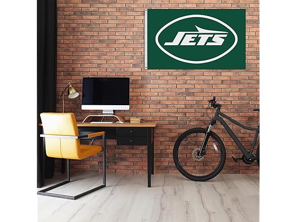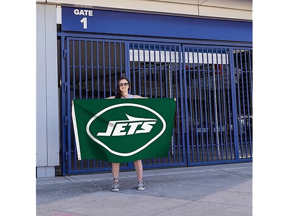 Rico Industries NFL Football New York Jets Primary Logo 3' x 5' Banner Flag Single Sided - Indoor or Outdoor - Home Décor