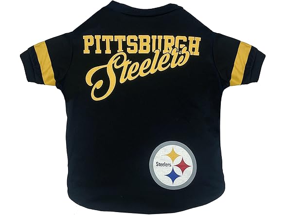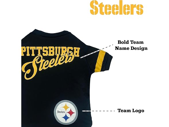 - DOG STRIPE T-SHIRT - Officially licensed by the NFL! Get your dog or cat an adorable & sporty pet T-shirt with your FAVORITE NFL FOOTBALL TEAM NAME AND LOGO. Special new design with stripes on the sleeves & EYE-CATCHING team graphics emblazoned on the Cat T-shirt.