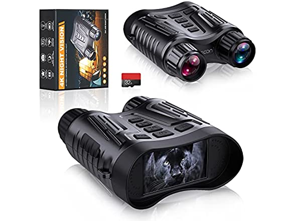 - High Quality Night Vision - The High Definition IR Goggles are tested by optics experts for an unforgettable experience. Excellent fully multi-coated all-optical system with a video camera, built-in 3.2" TFT LCD display screen. You can record 36MP images and 4K videos with vivid detail and save them in computer via USB cable(included), share with your family and friends by night vision goggles.