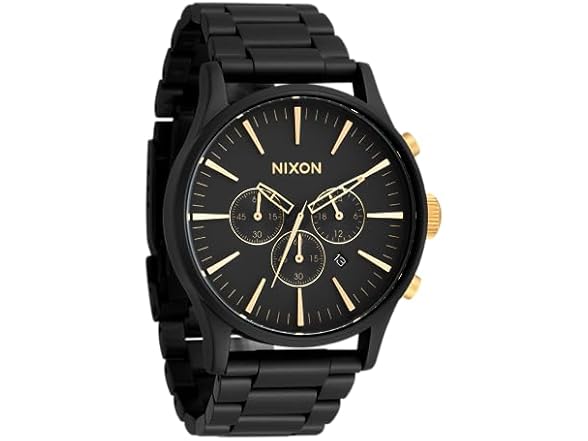 NIXON Sentry Chrono A1390 - Matte Black/Gold - 100m Water Resistant Men's Analog Classic Watch (42mm Watch Face, 23mm-20mm Stainless Steel Band)