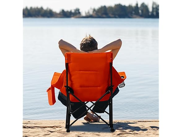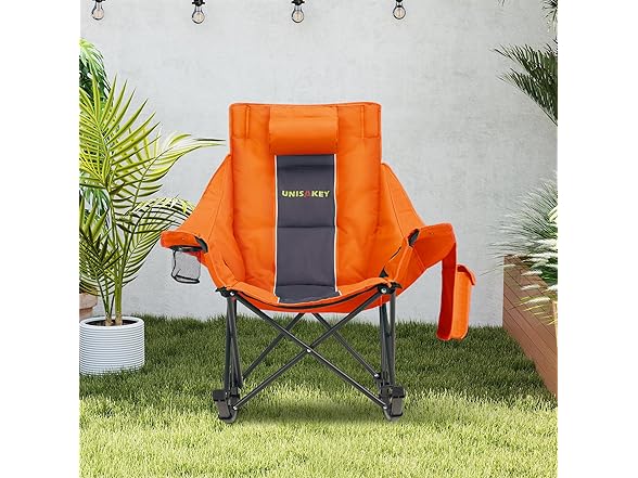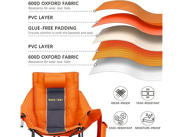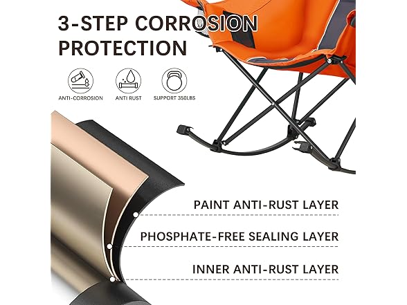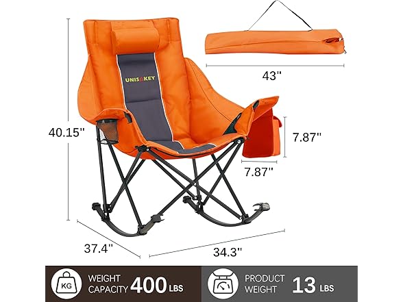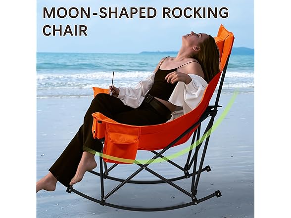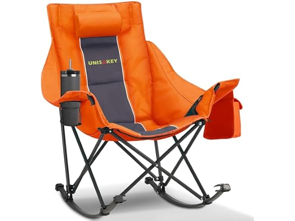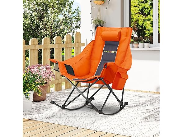Oversized Rocking Camping Chair with Headrest & Cup Holder - 400lbs Capacity, 600D Oxford Fabric, Easy Fold Portable Outdoor Rocker Chair for Camping, Backyard, Beach, Orange