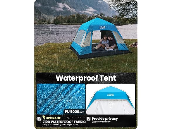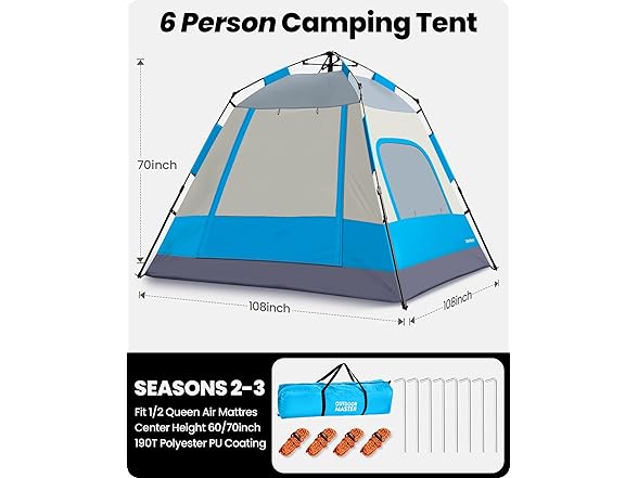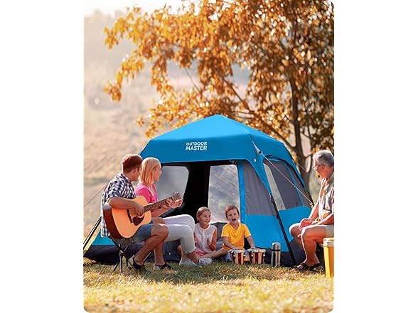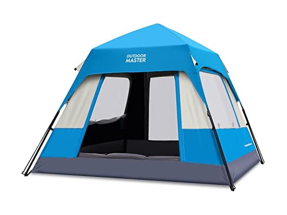 OutdoorMaster Camping Tents, 6 Person Camping Tent with Blackout Shelter Technology, Easy Setup in 60 Seconds, Weatherproof Pop Up Tent with Top Rainfly, Instant Cabin Tent (Sky Blue, 6 Person)