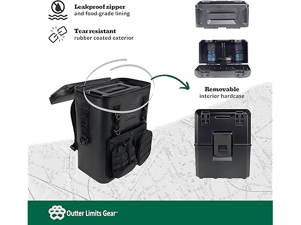 - DURABLE & VERSATILE: Our backpack cooler bag boasts a tear-resistant rubber-coated exterior, ensuring that it can withstand any rough handling. The leak proof zipper adds an extra layer of protection, ensuring that your items stay dry and safe inside. The interior is lined with food-grade material, which not only helps to prevent food spoilage but also keeps your items fresh. It also features a removable interior hard case that provides multiple storage options for your food and drinks.