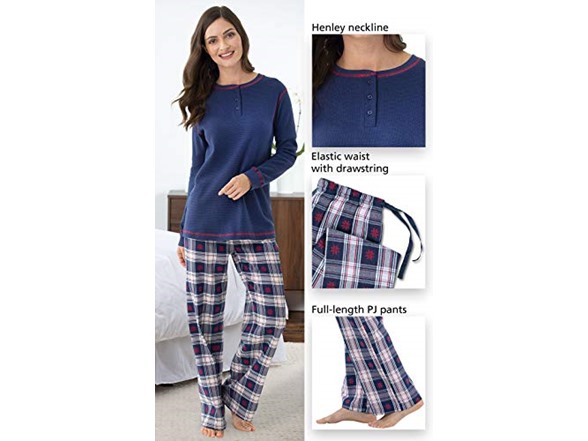 PajamaGram Snowfall Plaid Pajamas Set, Women 3X, 24-26, Blue