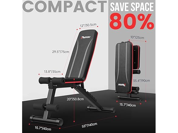 PASYOU Adjustable Weight Bench, Foldable Workout Bench with Incline & Decline Positions, Compact Full Body Strength Training Bench for Small Spaces