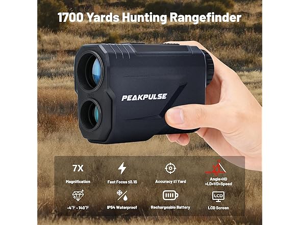 PEAKPULSE Hunting Range Finder 1700 Yards Rangefinder for Hunting Hunter 7X Magnification Rechargeable Battery Distance Vertical Horizontal Angle Speed Scan Clear