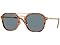 - FRAME FEATURES: PO3352S sunglasses feature a square, striped brown frame with light blue lenses.