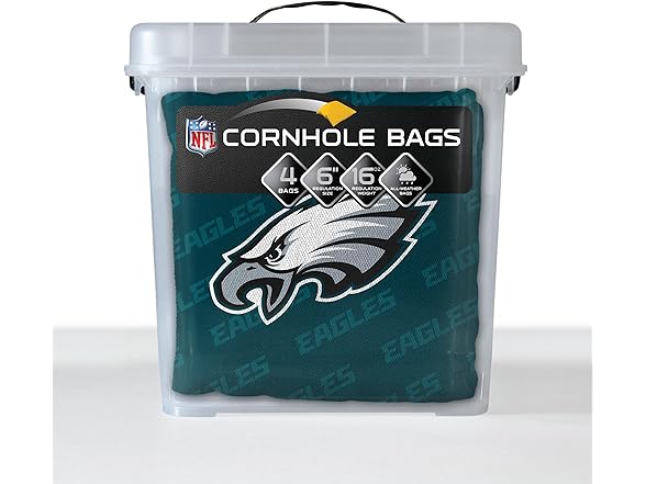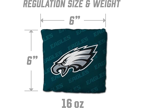 YouTheFan Officially-Licensed NFL Philadelphia Eagles Set of 4 Cornhole Bags - All Weather Regulation 6” x 6” Size - 16oz Weight - Designed in USA