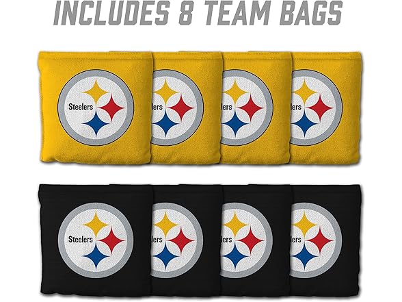 YouTheFan Officially-Licensed NFL Pittsburgh Steelers Set of 8 Cornhole Bags - All Weather Dual Sided Slide & Stop - Regulation Size with Carry case