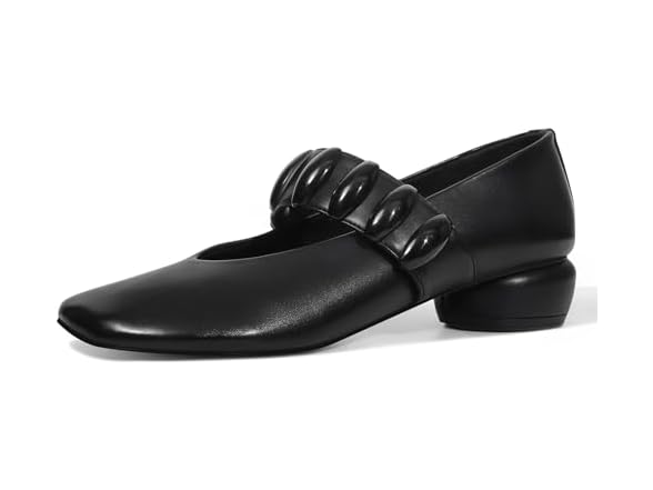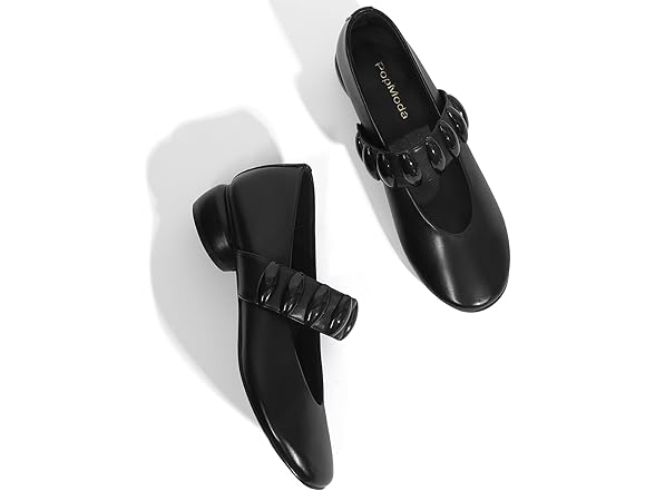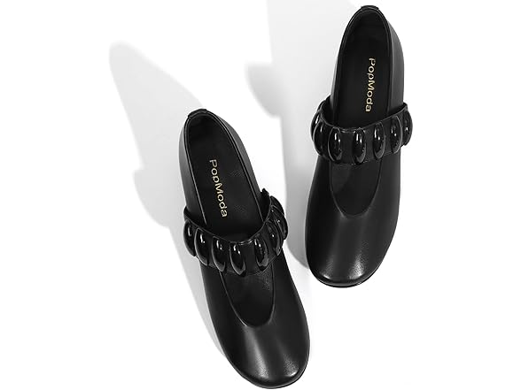 PopModa Mary Janes Dress Shoes for Women Heels Pumps Comfortable Closed Round Toe Chunky Low Heels Work Business Shoes Black