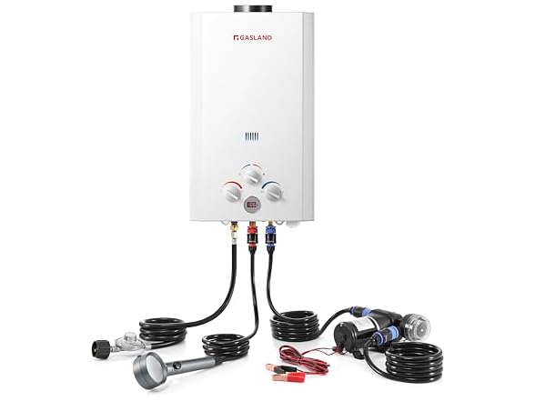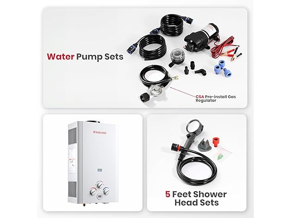 GASLAND 2.64 GPM Tankless Water Heater Propane 10L, Portable Propane Water Heater with Pump & Pipe Strainer for Camping and Off Grid Cabins, Outdoor On Demand Hot Water Heater for Above Ground Pool