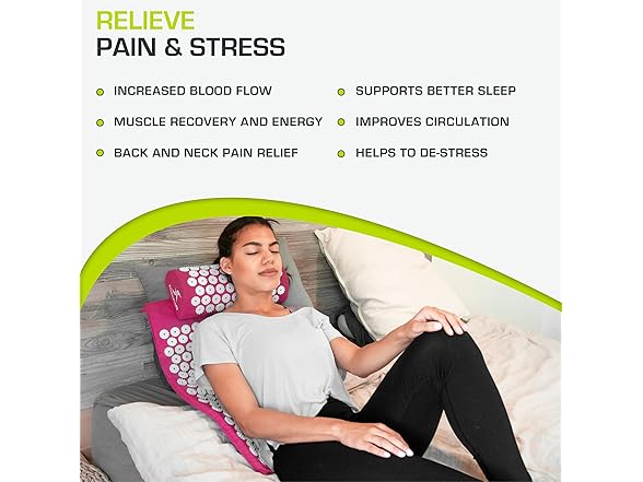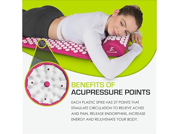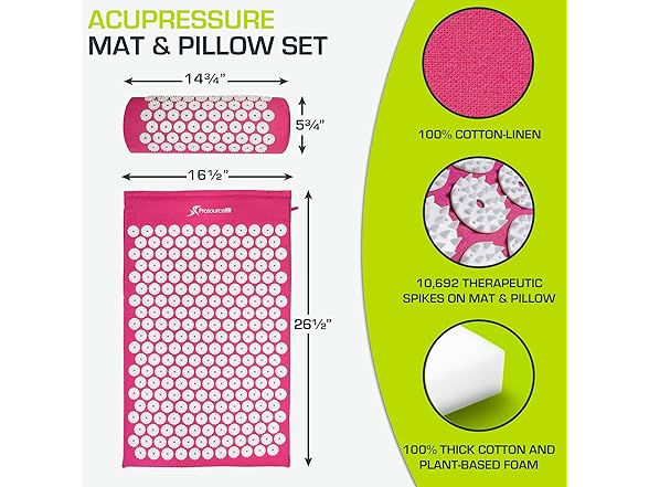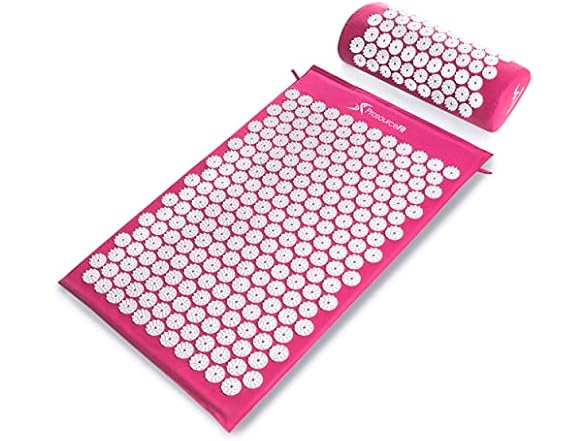 ProsourceFit Acupressure Mat and Pillow Set for Back/Neck Pain Relief and Muscle Relaxation - Pink/White