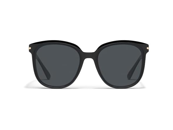 QUAY - Womens Sunglasses, Polarized Round Lenses with UV Protection (Rent Free, Black)