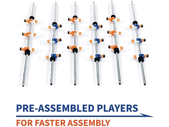 Turn any table at home into a play area with the Rally and Roar 40-inch Table Top Foosball. Its compact design is easy to store anywhere and spread across the table for play. Its space saving features makes having a little Foosball competition possible at home or any other location you wish.