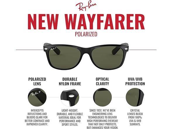 Ray-Ban RB2132 New Wayfarer Polarized Square Sunglasses