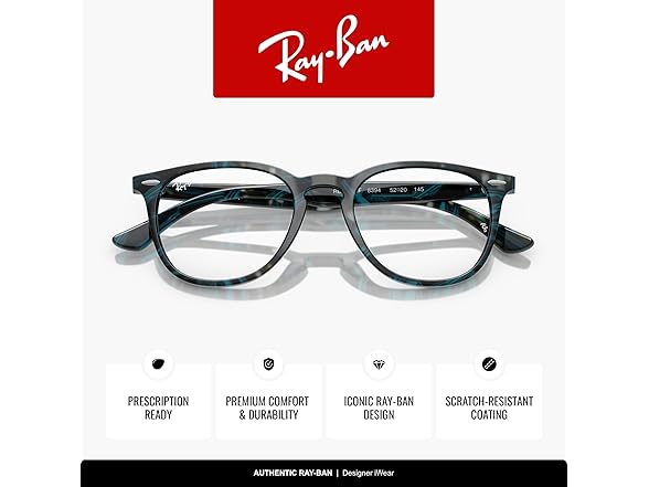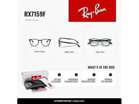 Ray-Ban RX7159F Low Bridge Fit Prescription Eyewear Frames, Transparent Fantasy Brown/Yellow/Demo Lens, 52 mm