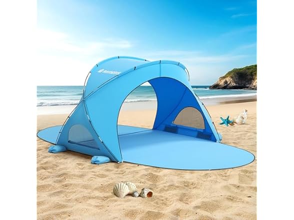 - Great View & Ventilation: The beach shade has 2 double-zippered doors and 2 mesh windows, expanding the view and promote air circulation. While embracing the shade, you can enjoy the beautiful beach scenery and cozy breeze. In addition, the tent doors can be zipped down and put down to serve as an expandable floor for beach parties. And when you need privacy, simply zip them up and then you can get a safe private space.