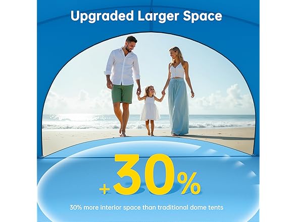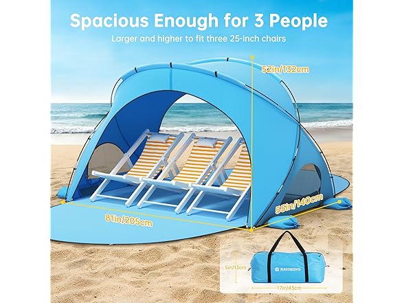 - Square-top Design: Raynesys beach tent measures 80.71 x 55.12 x 52.36 inches and perfectly fits 1-3 people. The tent adopts an upgraded square-top design, and can provide 30% more interior space than traditional dome tents. Ideal for family or friend gatherings on the beach.