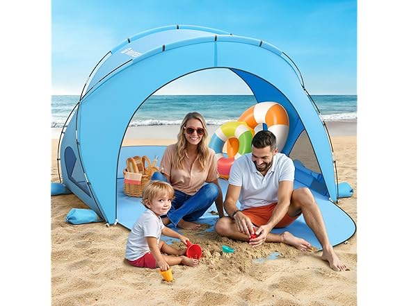 - Easy Setup & Takedown: Without much time and effort, our beach tent sun shelter can be installed and disassembled in minutes. When folded, the beach shade tent is compact and can be put into a storage bag for easy carrying. Whether it's a beach trip, fishing, camping, picnic, or hiking, you can take it with you and start a wonderful outdoor trip.