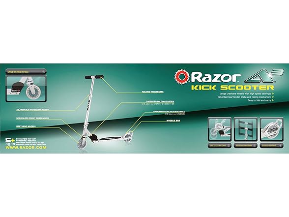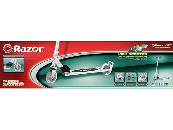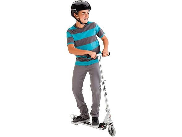 Razor A3 Kick Scooter for Kids - Larger Wheels, Front Suspension, Wheelie Bar, Lightweight, Foldable, and Adjustable Handlebars