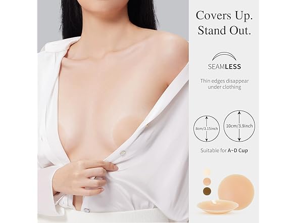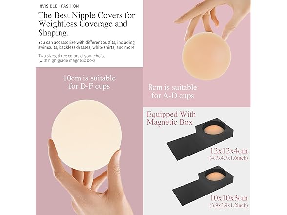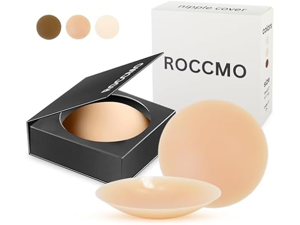 ROCCMO Premium Silicone Nipple Covers (2 Pairs) with Travel Case | Reusable, Invisible, Sweatproof, Ultra-thin & Comfortable (SKIN COLOR, LARGE (Fit D+ cups))