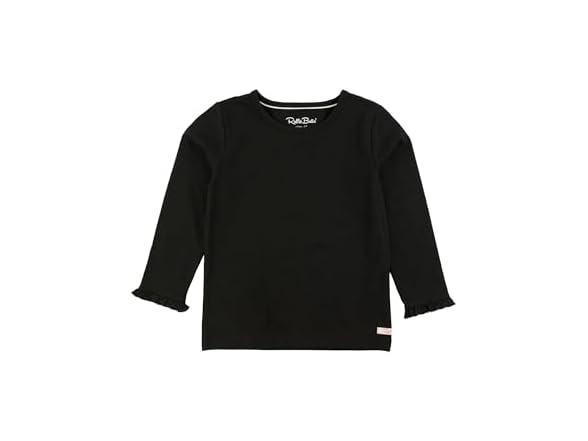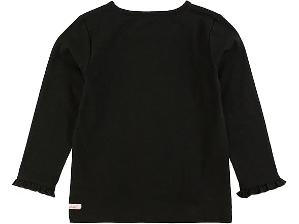 RuffleButts Black Knit Long Sleeve Ruffle Layering Tee - 12-18m