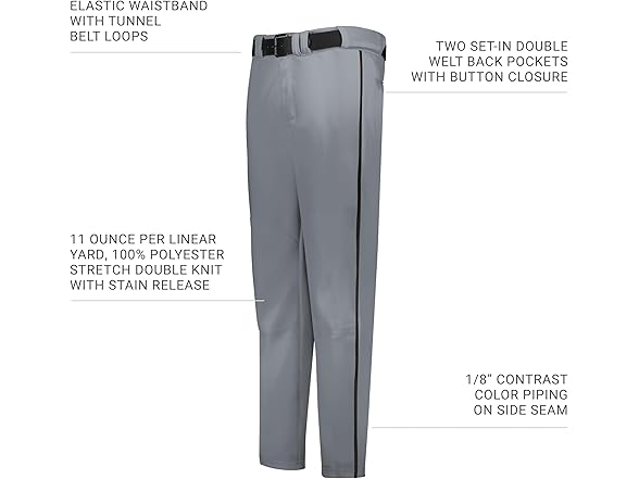 Russell Athletic Youth Piped Change Up Baseball Pant Baseball Grey/Black XS